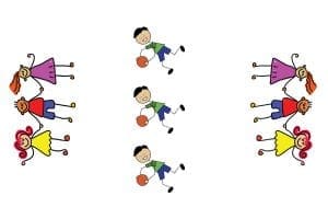 At your signal, Team 2 must try to pass between the two lines of Team 1 without being hit by a ball. Tell the children of Team 1 that they must bombard Team 2 with balls.