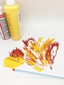 3. Then ask them to blow on the paint drops with a straw so as to make a fire.
