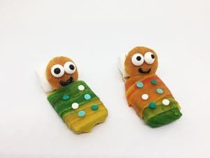 5. Then ask them to put icing on the Graham-type cookie and surround it with the Fruit Roll up. It’s the cover.