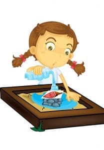 6. Fill the pitcher with water, then start pouring water on the image and wood until the ditch is filled.