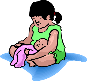 3. On your cue, tell a first child on each team to swaddle the baby in a blanket and then pass it to the right so they will do the same.