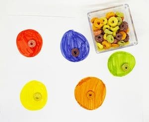 You can use a small cake pan to sort the cereal. Simply put a circle of paper of the right colour in each cake pan and let the children place the cereal in the right one.